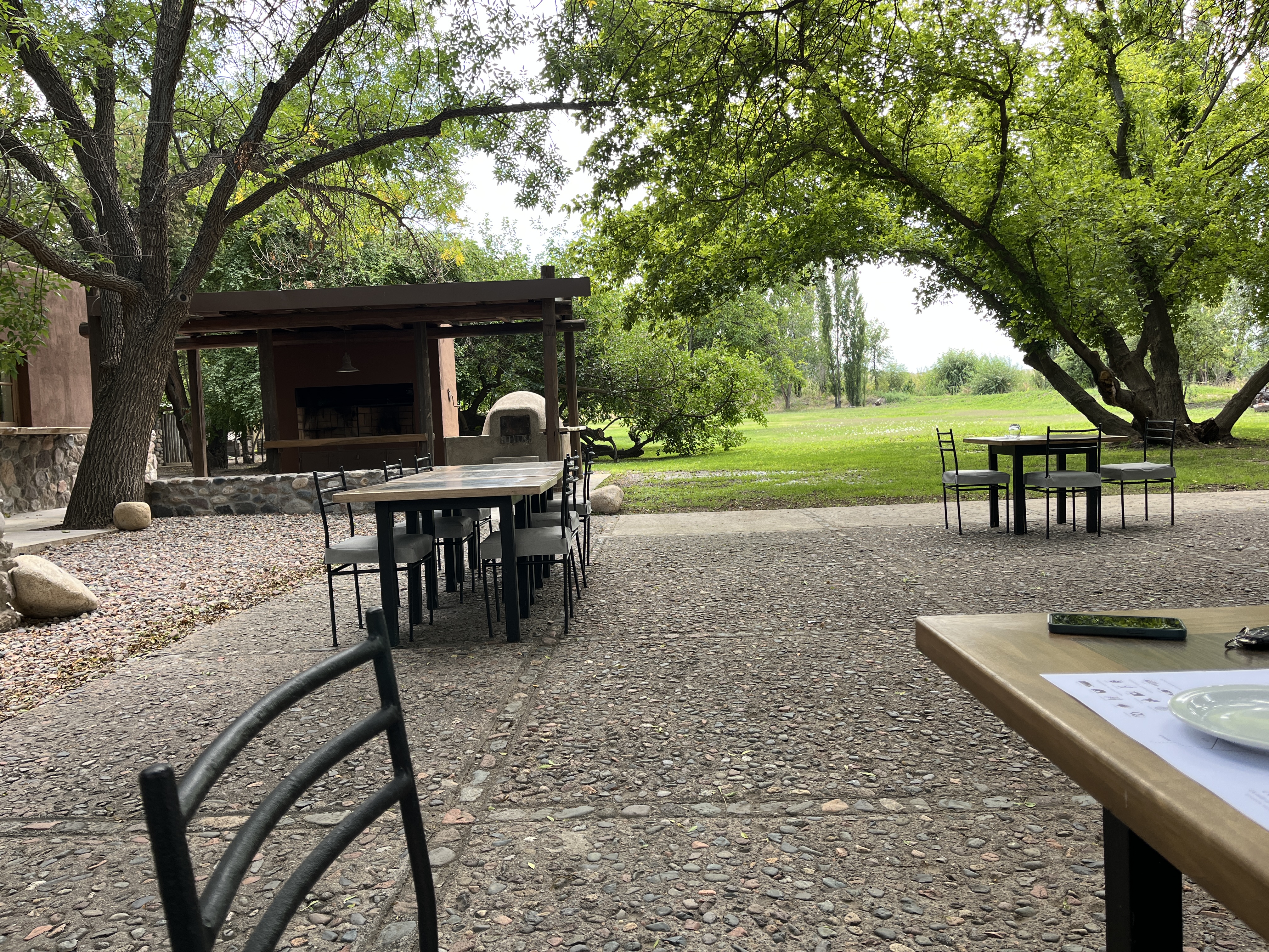 Dom had coordinated a tasting lunch for us at Rincón Atamisque, and we opted to sit out under the trees. Our meal was delicious and included a variety of Atamisque wines, beginning with the Atamisque Extreme Brut. They easily accommodated our food preferences, and we enjoyed a Malbec and a Cabernet Franc. Relaxing amongst the trees and getting to know our guide, Dom, a bit better was a highlight of the Mendoza trip. Without another tasting scheduled that afternoon, we were able to leisurely enjoy the afternoon (and we didn’t even take copious notes on our meal and pairing…thus the lack of specifics around what we ate and drank!)