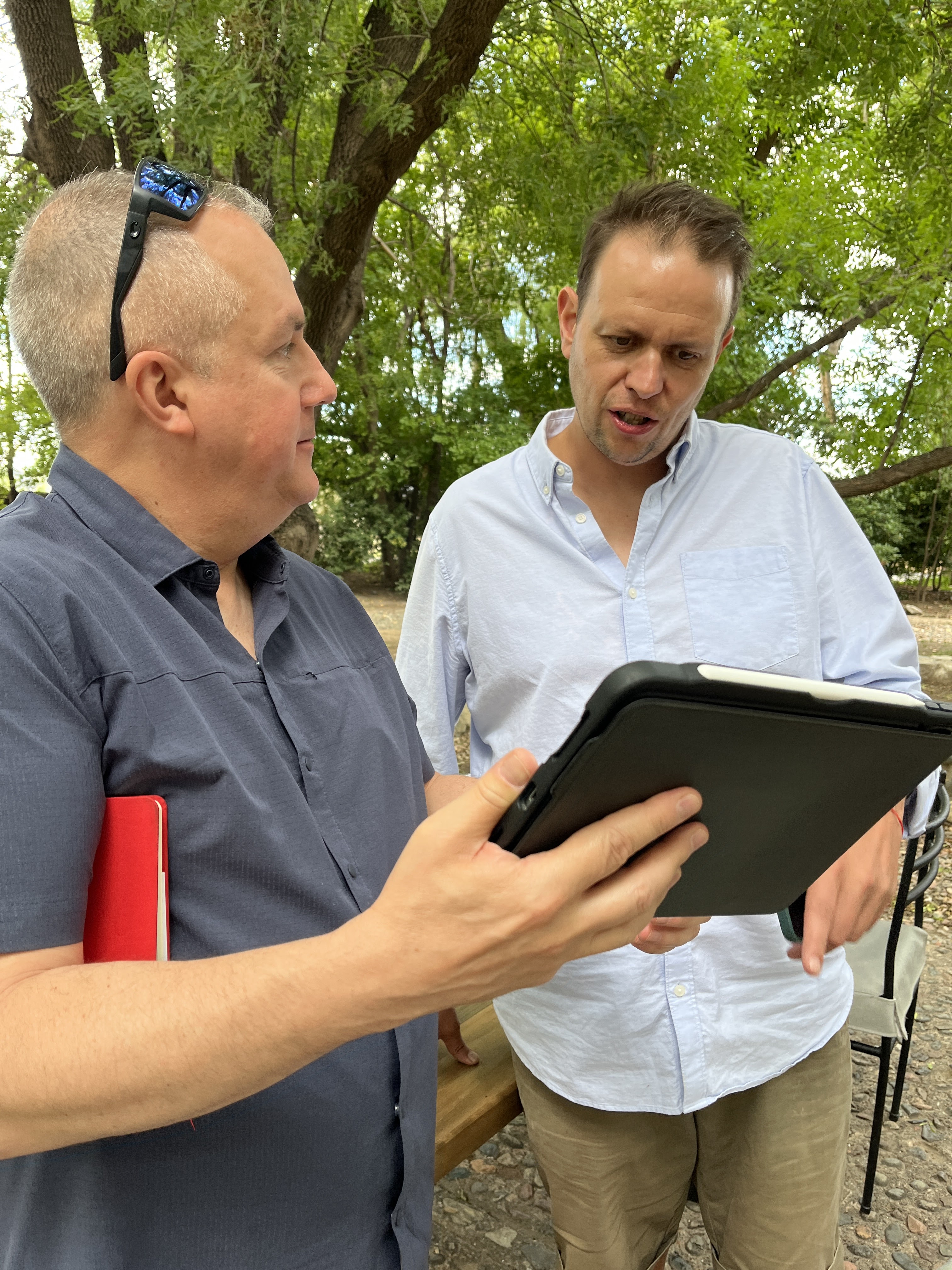 We arrived at Caelum with the sun shining, and the Andes once again towering above us in the distance. Even Tupungato, the volcano, was gracing us with its beauty as we started our day here. 🏔️