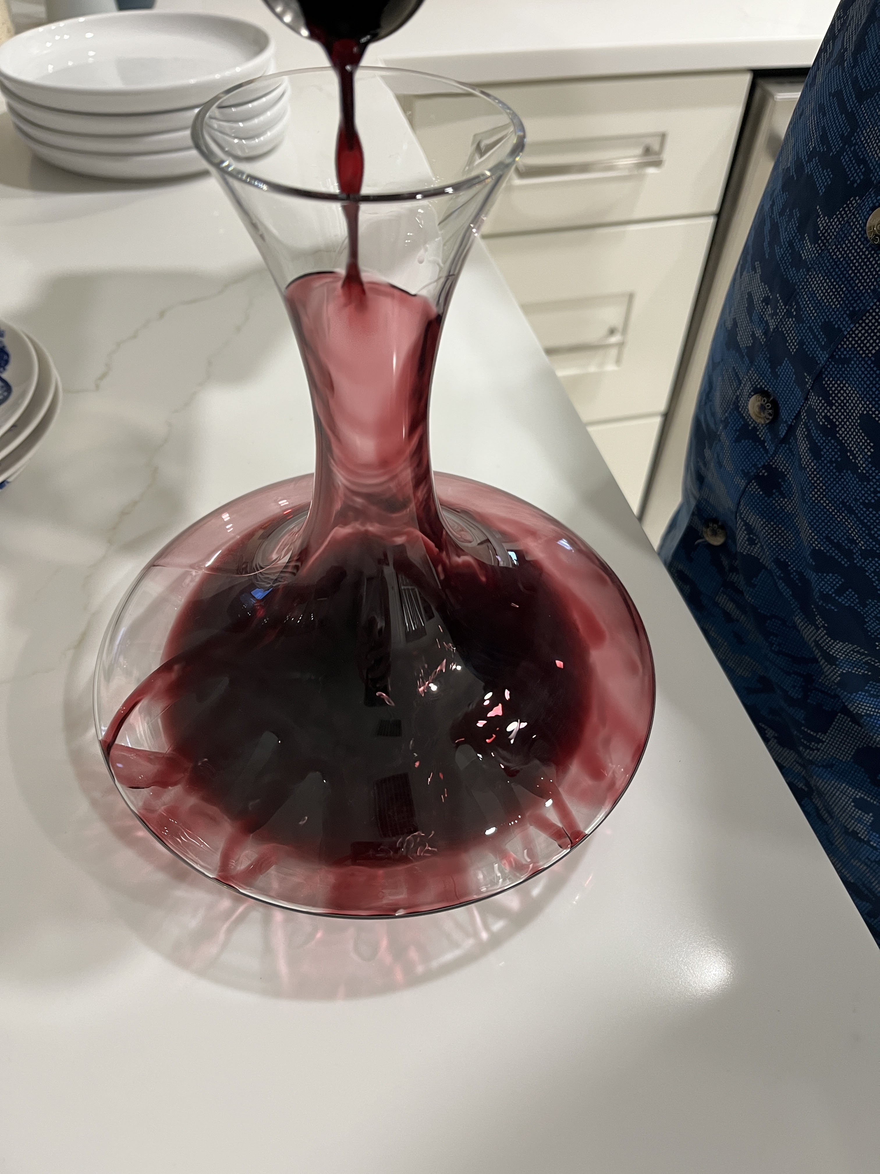 Look at that beauty! Deep purple and full bodied…Gorgeous going into the decanter.