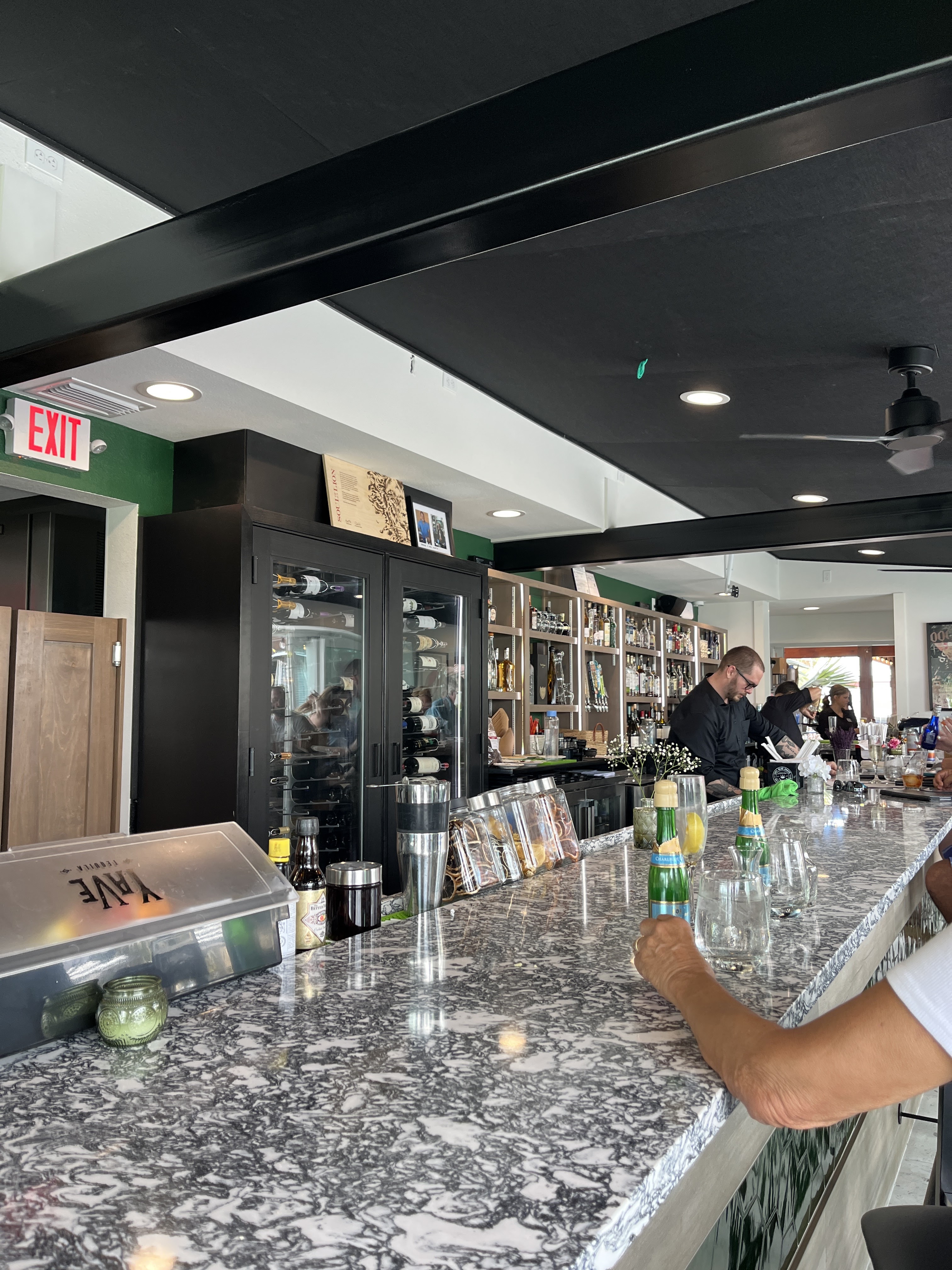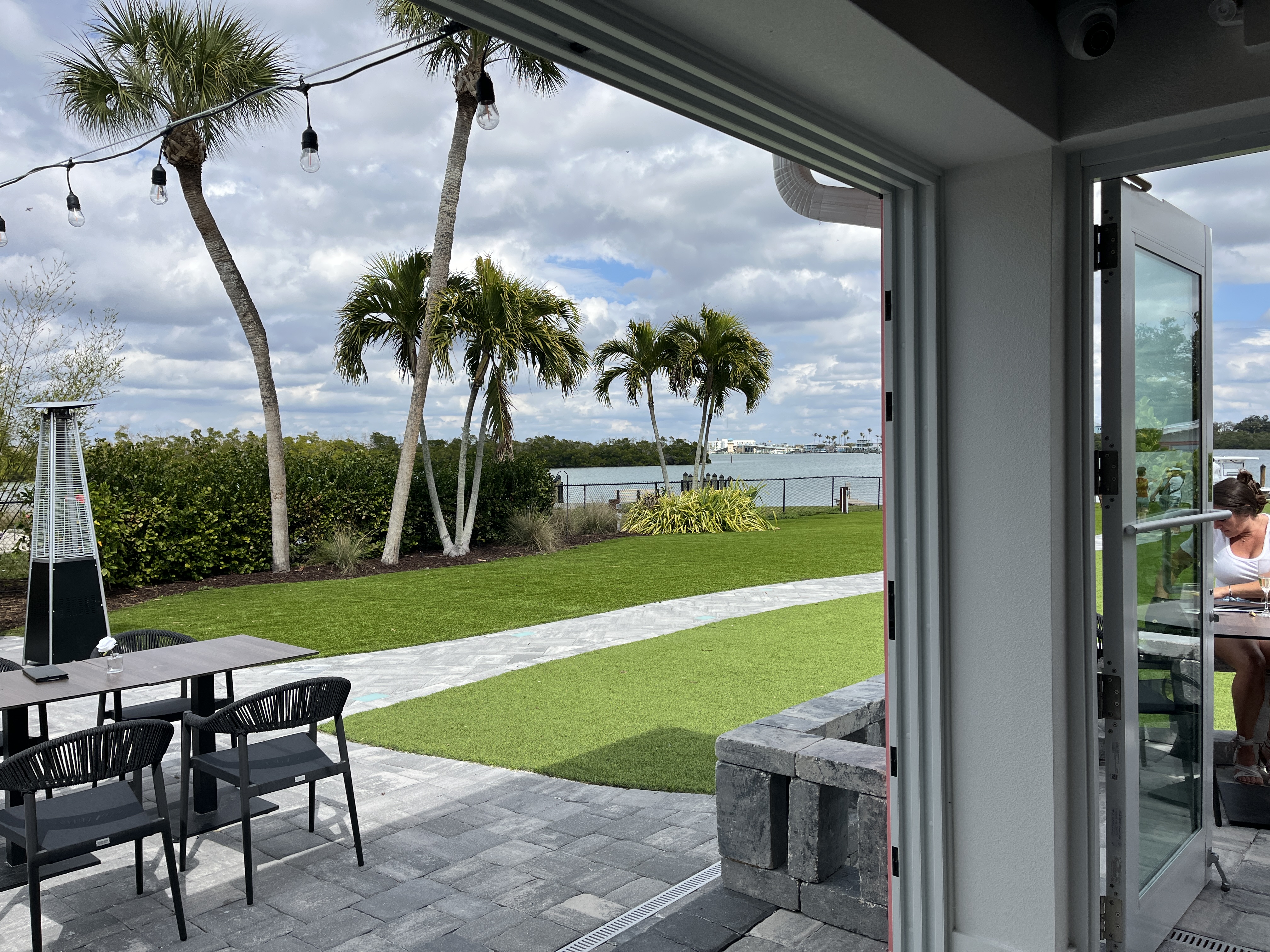 We chose to sit out at the new bar, which provides a great view of the ICW. I enjoyed watching two dolphins frolick in the water, and then an eagle fly by, while perusing the wine list. THIS is why we live here.